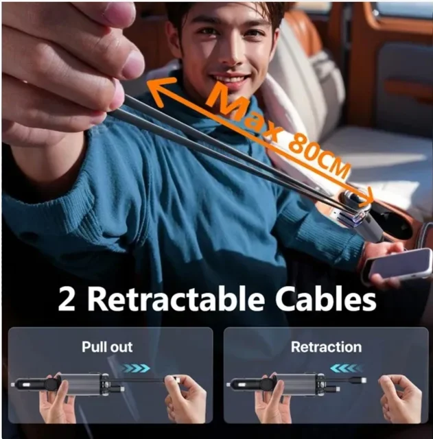 توان خروجی: حد اکثر 45 واتکابلهای خروجی:۱ عدد کابل جمعشونده Type-C (اندروید و آیفون ۱۵ به بعد) ۱ عدد کابل جمعشونده Lightning (آیفون ۱۴ و مدلهای قدیمیتر)طول کابلها:قابلیت باز شدن تا ۸۰ سانتیمترپورت اضافی:۱ عدد پورت USB-Cقابلیت شارژ همزمان:۳ دستگاه