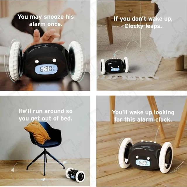 یک ساعت آلارم منحصر به فرد که پس از زنگ زدن فرار میکند و برای خاموش کردن آن باید دنبالش بروید. مناسب افراد خوابآلود و تنبل، ساخته شده از مواد ضد ضربه.